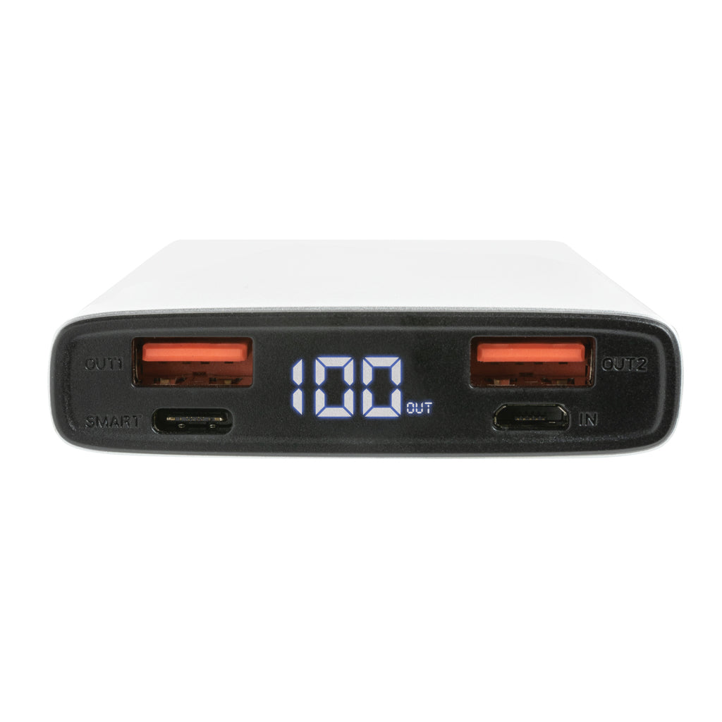 Charge all your mobile devices with the fastest charging speed possible. This aluminium 18W PD powerbank comes with an ultra fast type C output and a QC 3.0 USB A output. The item has a 10000 mah A grade li-polymer battery to charge your device up to 5 times. With battery indicator lights to show the remaining energy level. Micro USB Input 5V/2A; Type-C Input 5V/3A, 9V/2A, 12V/1.5A; USB output 5V/2.1A; QC 3.0 output 5V/3A,9V/2A,12V/1.5A; Type-C Output 5V/3A,9V/2A,12V/1.5A 18W max(PD 3.0) ;USB-A Output: 5V/3A,9V/2A,12V/1.5A 18W max(PD 3.0) Including PVC free TPE material micro charging cable.