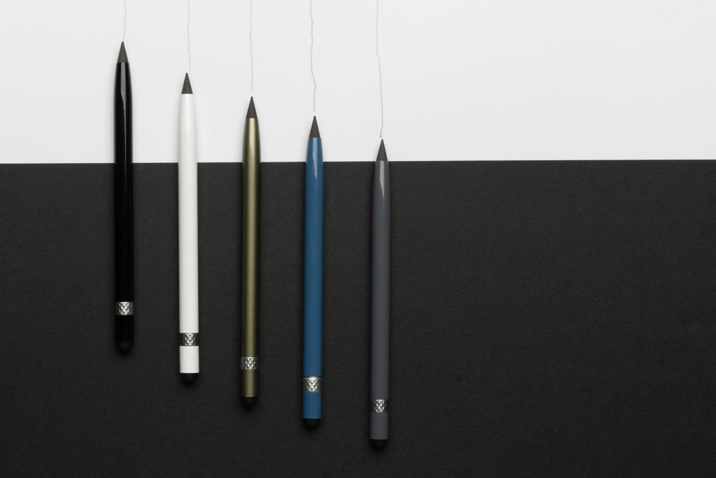 This inkless pen with eraser replaces your traditional wooden pencil. It has a writing length of up to 20.000 metres using a graphite tip to produce a graphite line. It features a clean and modern look with the aluminum and on the top you will find an eraser.