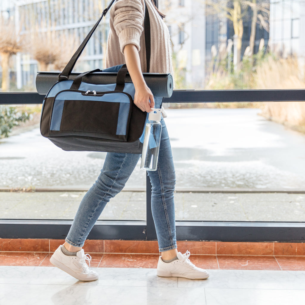 AS bottle. BPA-free and re-usable. With carry screw cap. Spill proof. This water bottle is perfect for use at the gym. Cold water and handwash only. Content 650 ml.