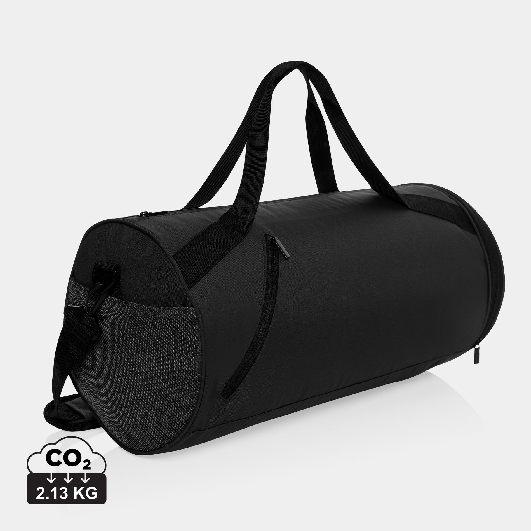 Stay organized and stylish with the Aware™ RPET True Sports Bag. Made from 100% rPET, this durable and functional bag features an adjustable shoulder strap (140cm), two webbing handles with a button closure, and multiple compartments for easy storage. The front zipper pocket, shoe zipper compartment (Up to size EU size 46.5 fit) on the side, and spacious main zipper compartment ensure you can carry everything you need, whether it's for the gym, weekend trips, or daily activities; Made with recycled polyester embedded with the AWARE™ tracer. 2% of proceeds of each product sold with AWARE™ will be donated to Water.org. PVC free.