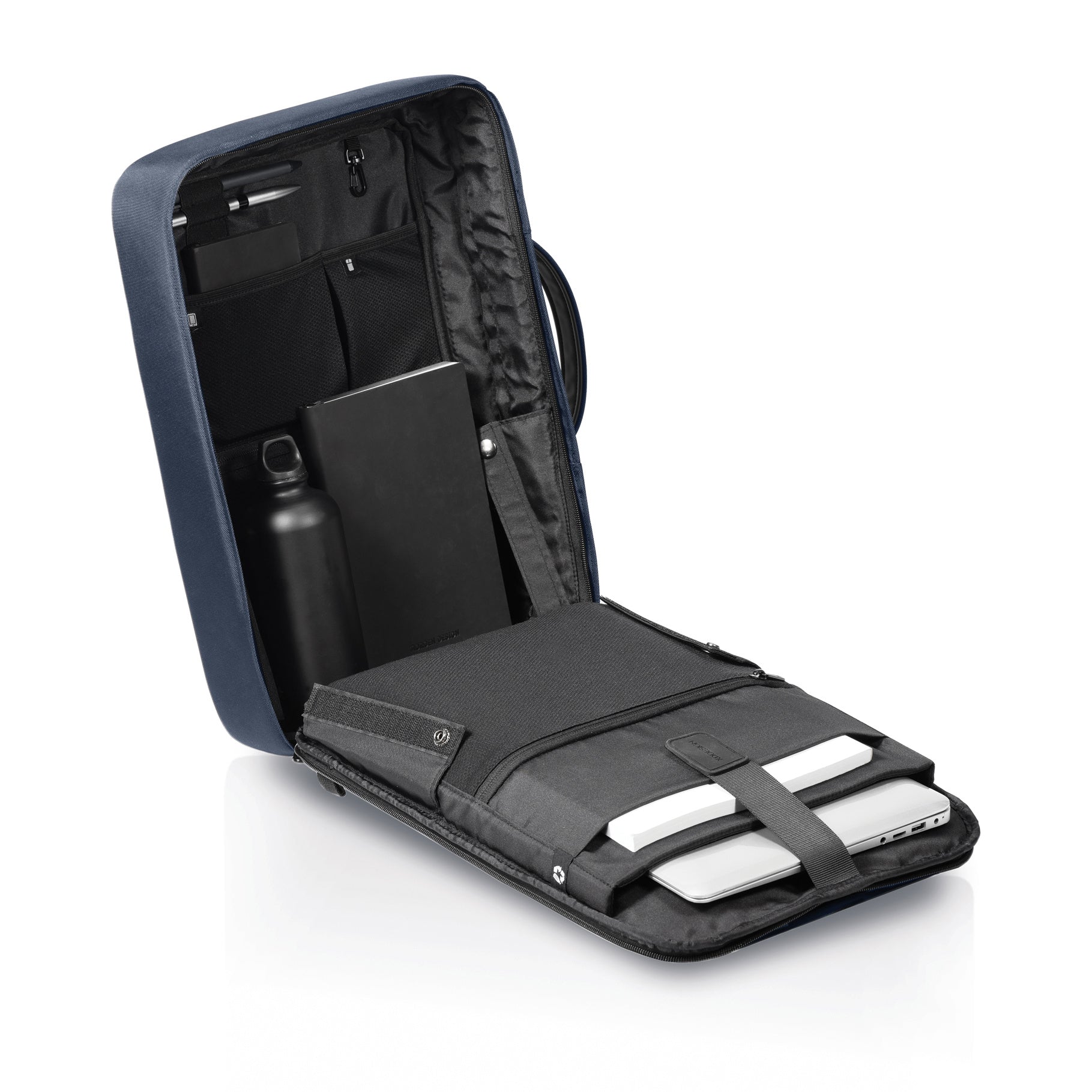 Keep your belongings safe and make your commute all that more comfortable with our latest generation Bobby anti-theft backpack and briefcase. It’s made out of high quality polyester and has reflective prints for your night safety. There are padded compartments for a 15.6” laptop, tablet up to 10” and all your other gear on the inside. The built in metal frame keeps your belongings safe and backpack in shape. Easily switch from backpack to briefcase carrying. Quickly lock your bag to any fixed object with the integrated zinc alloy lock in the right strap. Including luggage strap. Registered design®