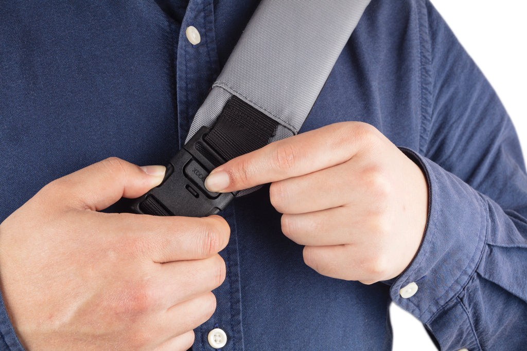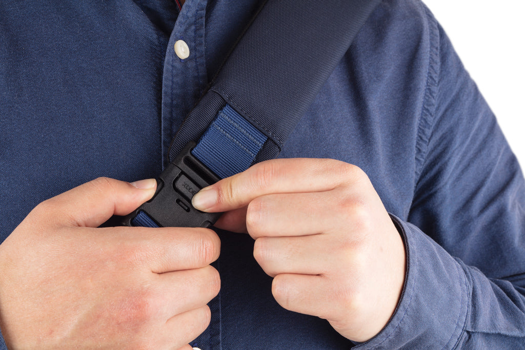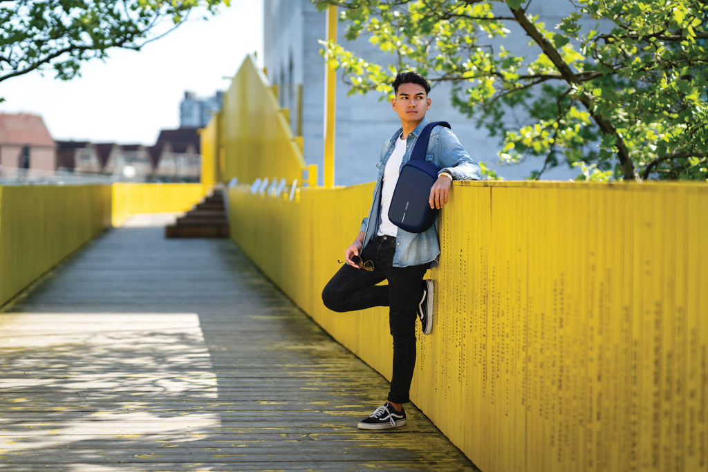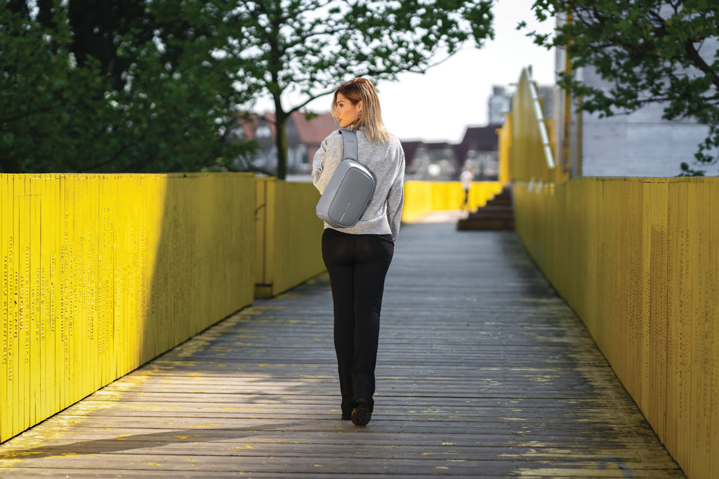 Safe, comfortable, and smart, the Bobby Sling was designed for city travelers. Feel protected with the famous Bobby anti-theft features like hidden zippers, no front access, RFID protected pocket, and cut-resistant material. There is also a 3-point safe buckle, ensuring your daily essentials are always along your body. Additional features like water-resistant material and an integrated USB charging port make this crossbody backpack the most convenient option for your everyday journey. Made from R-pet fabric with the AWARE™ tracer. With AWARE™, the use of genuine recycled fabric is guaranteed. 37% Recycled content. Registered design®