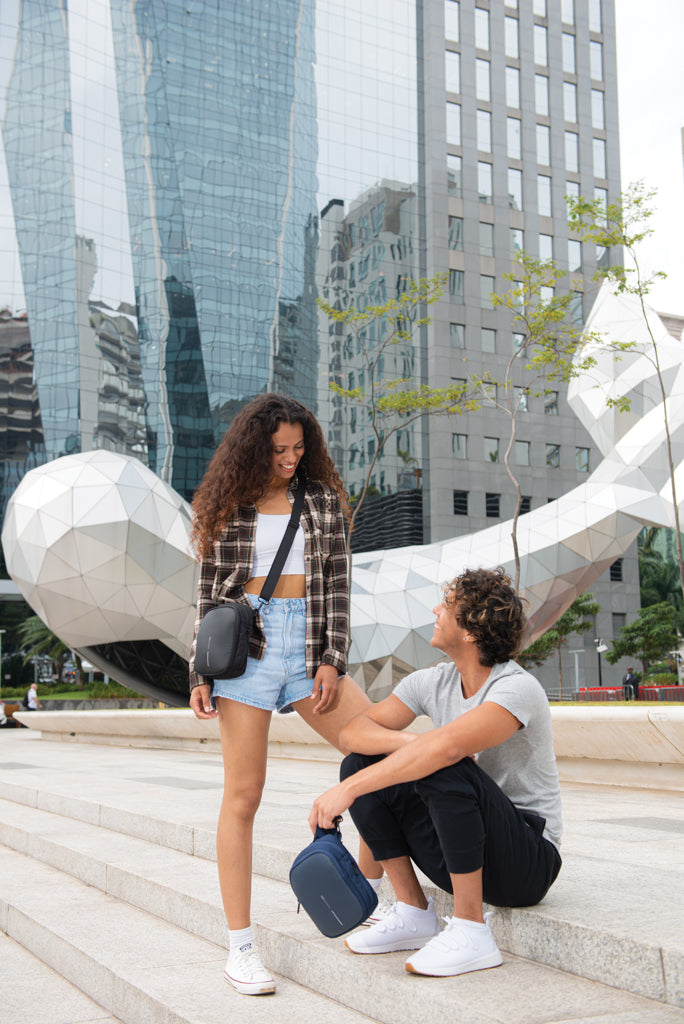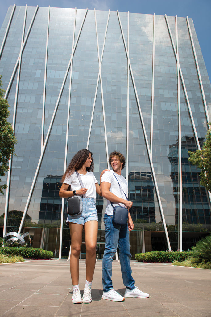 The Boxy Sling is a versatile cross body bag, designed to carry everyday essentials. The pack can be worn around the neck, over the shoulder or around the waist. It has enough capacity to hold a cellphone, wallet or purse, passport, notebook and various other small items. The hidden rear pocket is perfect for discreetly storing cash, cards or other valuable items. The Boxy Sling has a unique hidden water bottle pocket that can stay tucked away when not in use. Made from R-pet fabric with the AWARE™ tracer. With AWARE™, the use of genuine recycled fabric is guaranteed. 27% recycled content.