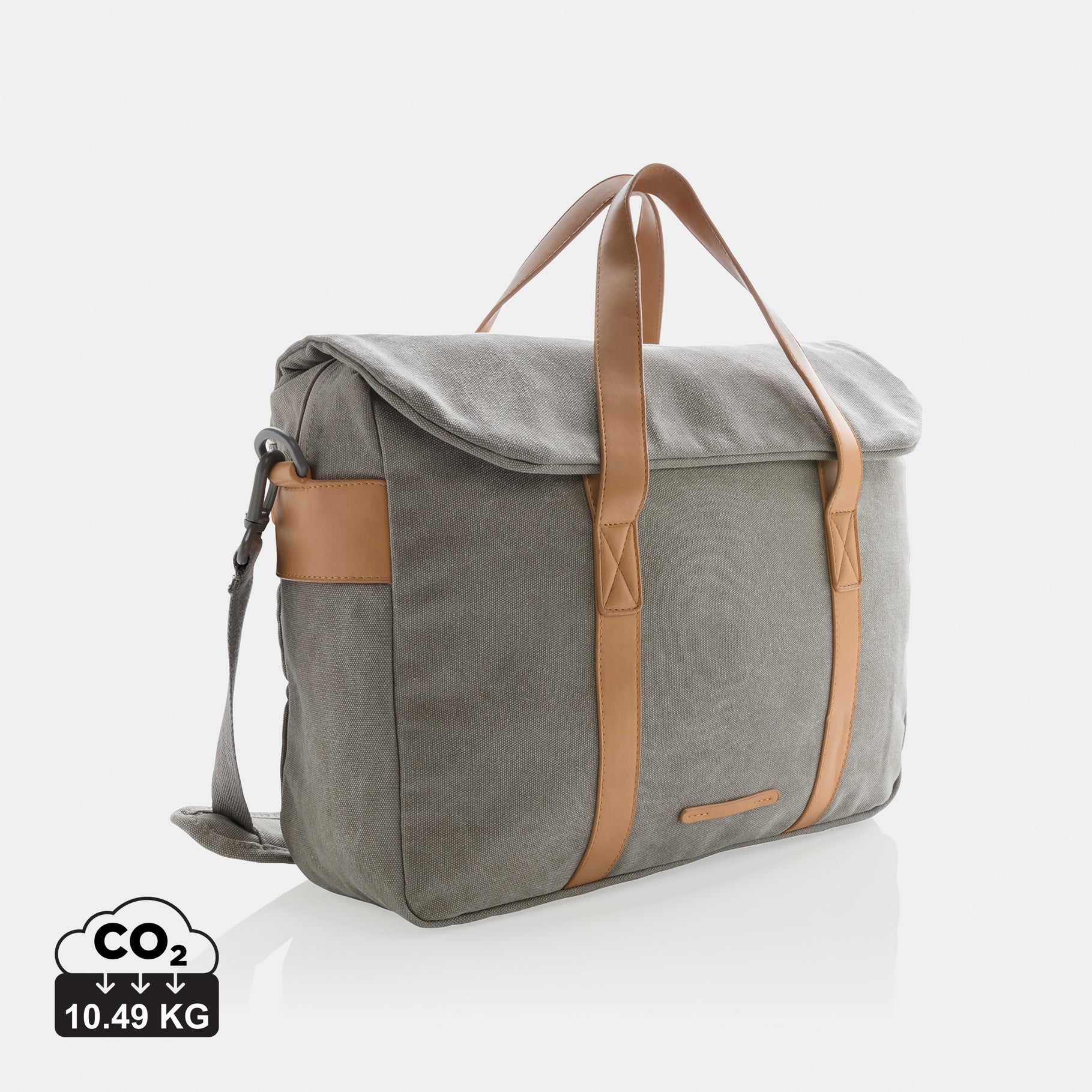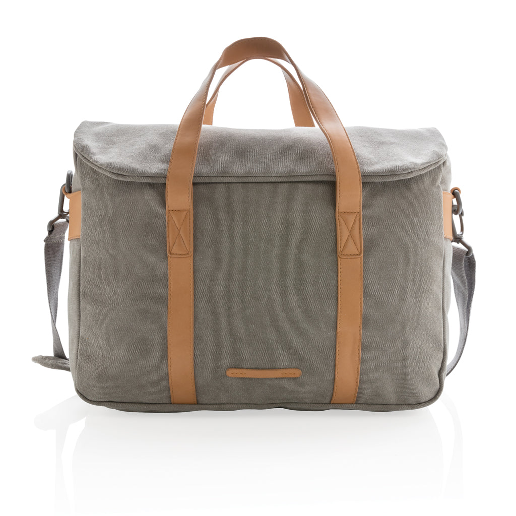 Carry your computer in style with this natural and durable canvas laptop bag. The bag is padded to protect your computer. Luxury imitation leather details take its appearance to the next level. Fits laptops up to 15.6", documents and tablets. Including removable and adjustable shoulder strap. PVC free.