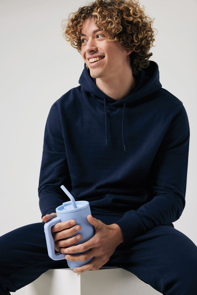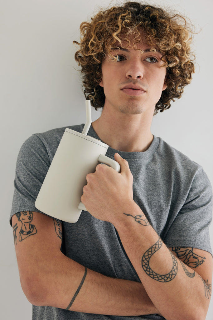 Indulge in the robust embrace of our generously sized 800ml mug – substantial and perfect for on your office desk. Its sturdy handle and broad base make it an ideal companion for your daily water intake in the office. Crafted from durable recycled stainless steel, this mug is designed to meet your hydration needs.This hefty, double-walled, vacuum-insulated mug comes equipped with a secure lid, straw, and a silicone straw tip. Versatile enough for both piping hot and ice-cold beverages, the screw-on lid offers a dual function – a convenient drinking spout or the option to use a straw. For optimal care, we recommend handwashing this substantial mug