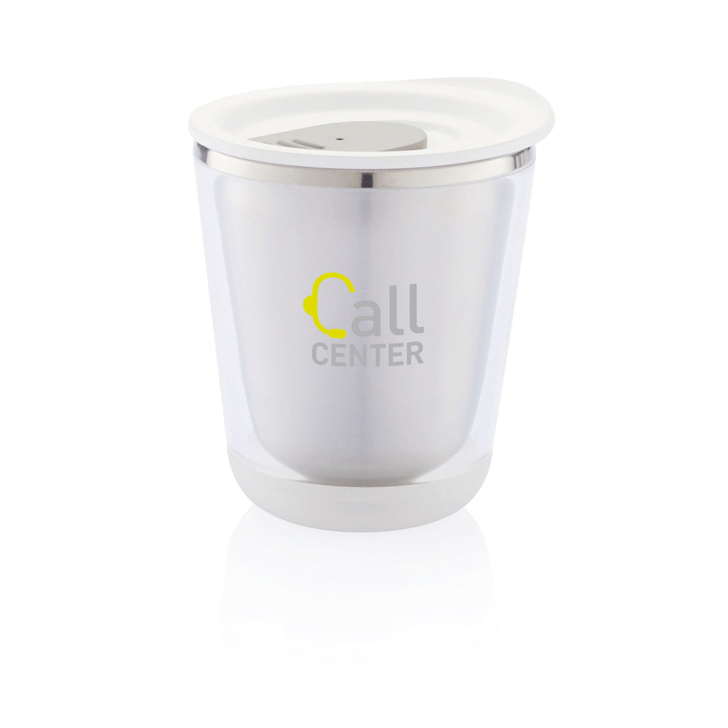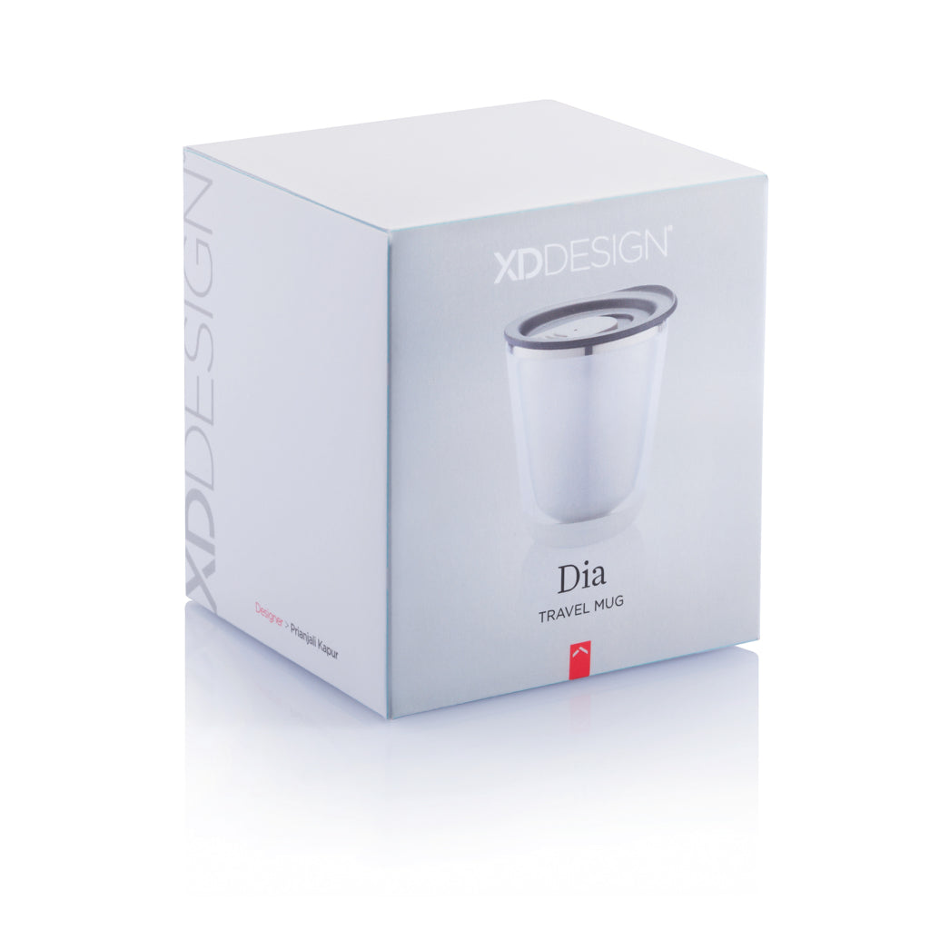 Closable, insulated and compact enough to fit under the coffee machine (227 ml). It is also very hygienic due to the lining of the mug being made out of stainless steel and not plastic. Designed so that the mug is easy to take apart for recycling. Registered design®