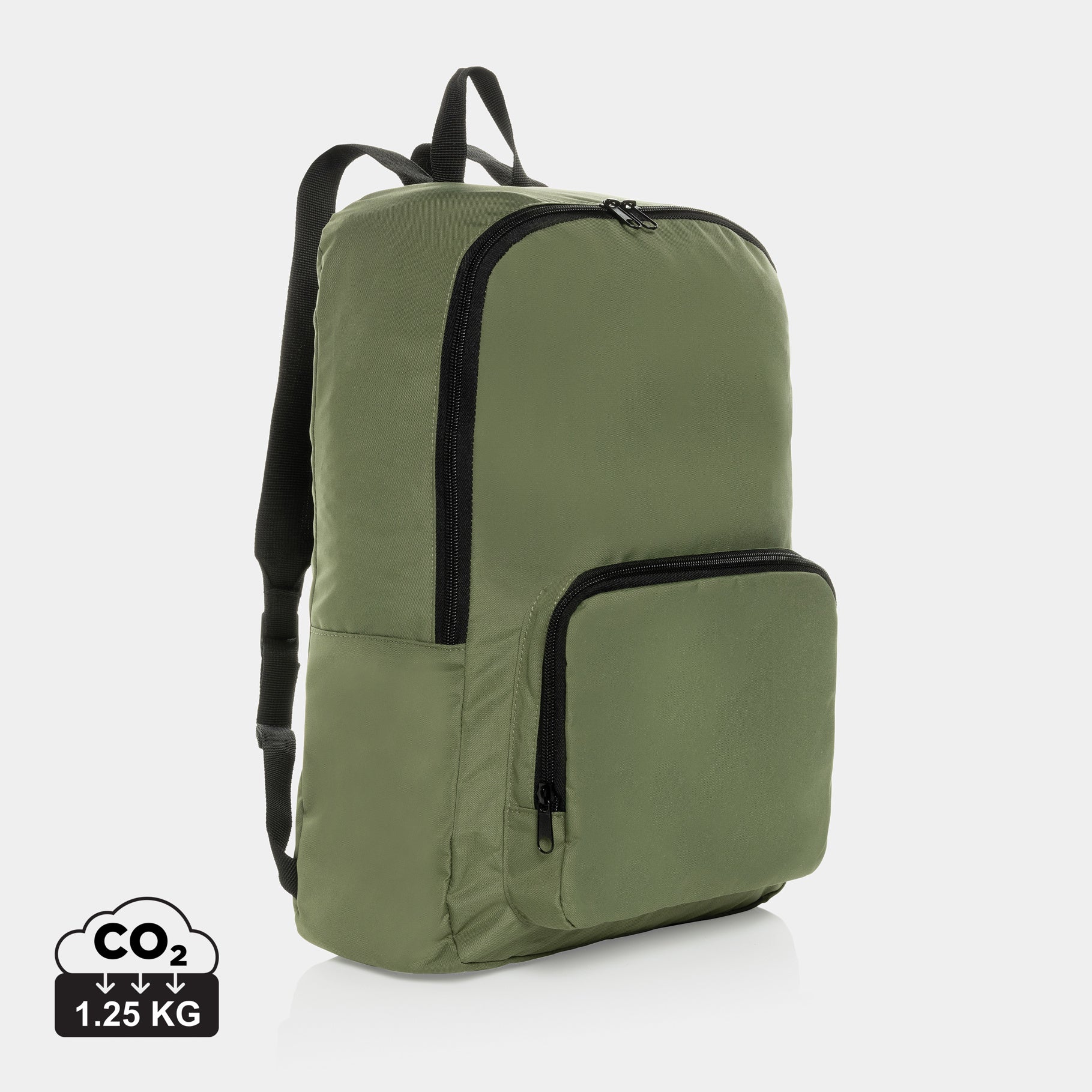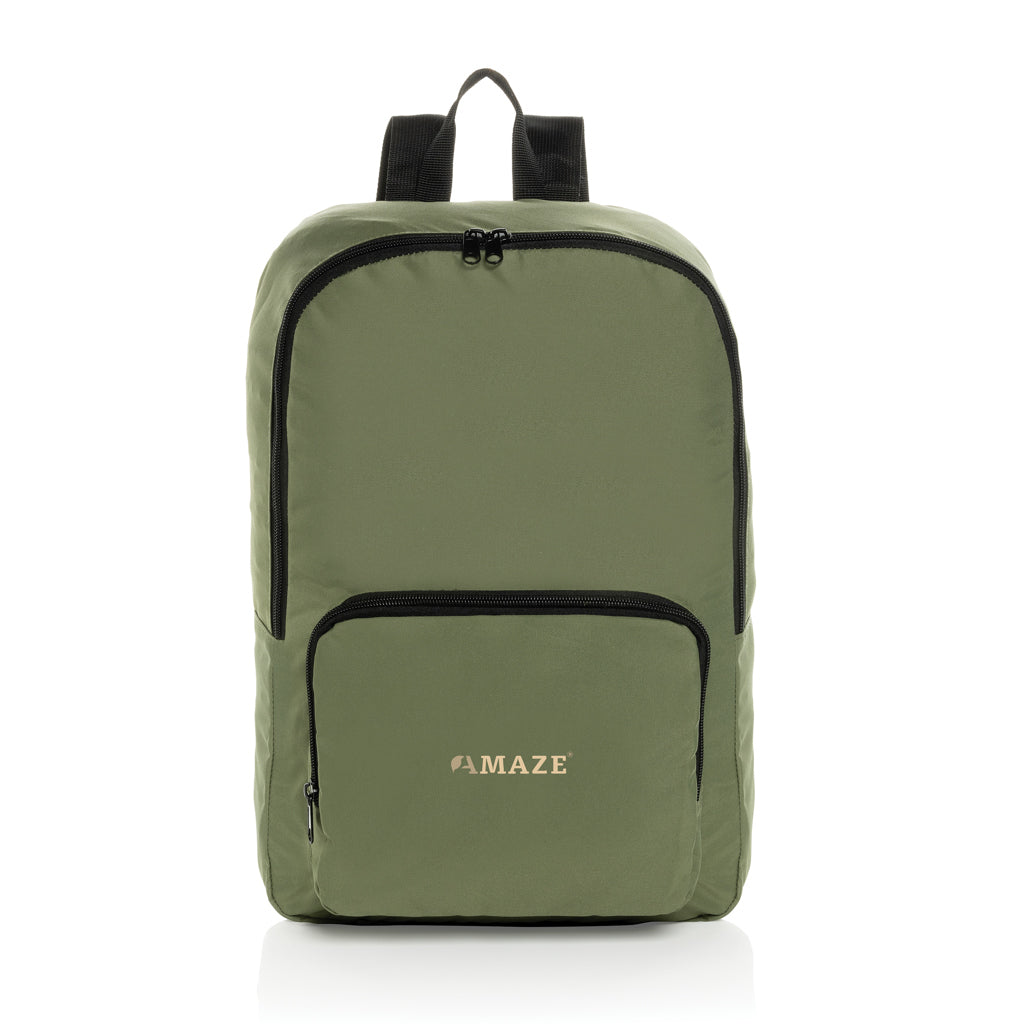 The Dillon foldable classic backpack is your ultimate travel companion. Lightweight and packable, crafted from durable 300D recycled polyester, this versatile bag is designed for seamless adventures. The backpack features 1 main compartment and a zippered front pocket. Foldable so easy to take with you if you need more added capacity. Made with 100% recycled polyester embedded with the AWARE™ tracer. 2% of proceeds of each Aware™ product sold will be donated to Water.org. PVC free.