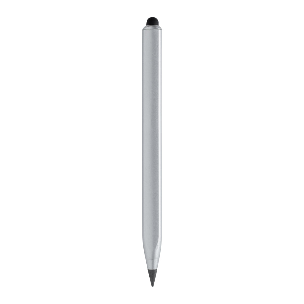 Modern infinity pen made with RCS certified recycled aluminum. Total recycled content: 40% based on total item weight. RCS certification ensures a completely certified supply chain of the recycled materials. Triangle shaped body with CM indication on one side and Inches on another side. Traditional wooden pencils write only up to around 200 metres but this Tree free infinity pencil, has a writing length of up to around 20000 metres using a graphite tip to produce a graphite line. Not only does it write like a pencil, but the markings can be erased. It works by leaving a graphite line on paper just like a regular traditional wooden pencil but it wears down so slowly, that it should outlast up to 100 traditional wooden pencils! With touch tip to operate mobile device. Packed in FSC® mix packaging.