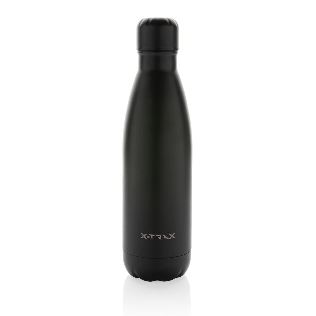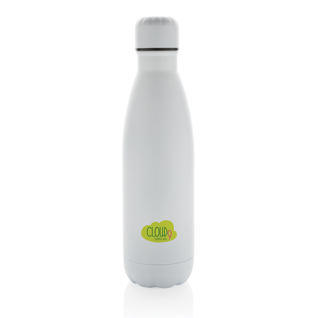 Elevate your daily water intake with this single wall stainless steel bottle. The bottle is suitable for cold drinks only. With a base that fits in most cup holders, this sleek looking water bottle will keep you hydrated on the go wherever you are. Made with RCS (Recycled Claim Standard) certified recycled materials. RCS certification ensures a completely certified supply chain of the recycled materials. Total recycled content: 84% based on total item weight. BPA free. Capacity 500ml. Including FSC®-certified kraft packaging.