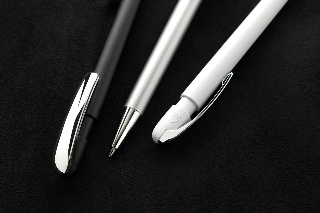 Ballpoint pen with stunning chrome metal clip design. Including ca. 1200m writing length German Dokumental® blue ink refill with TC-ball for ultra smooth writing. Made with 55% recycled ABS RCS Certified.