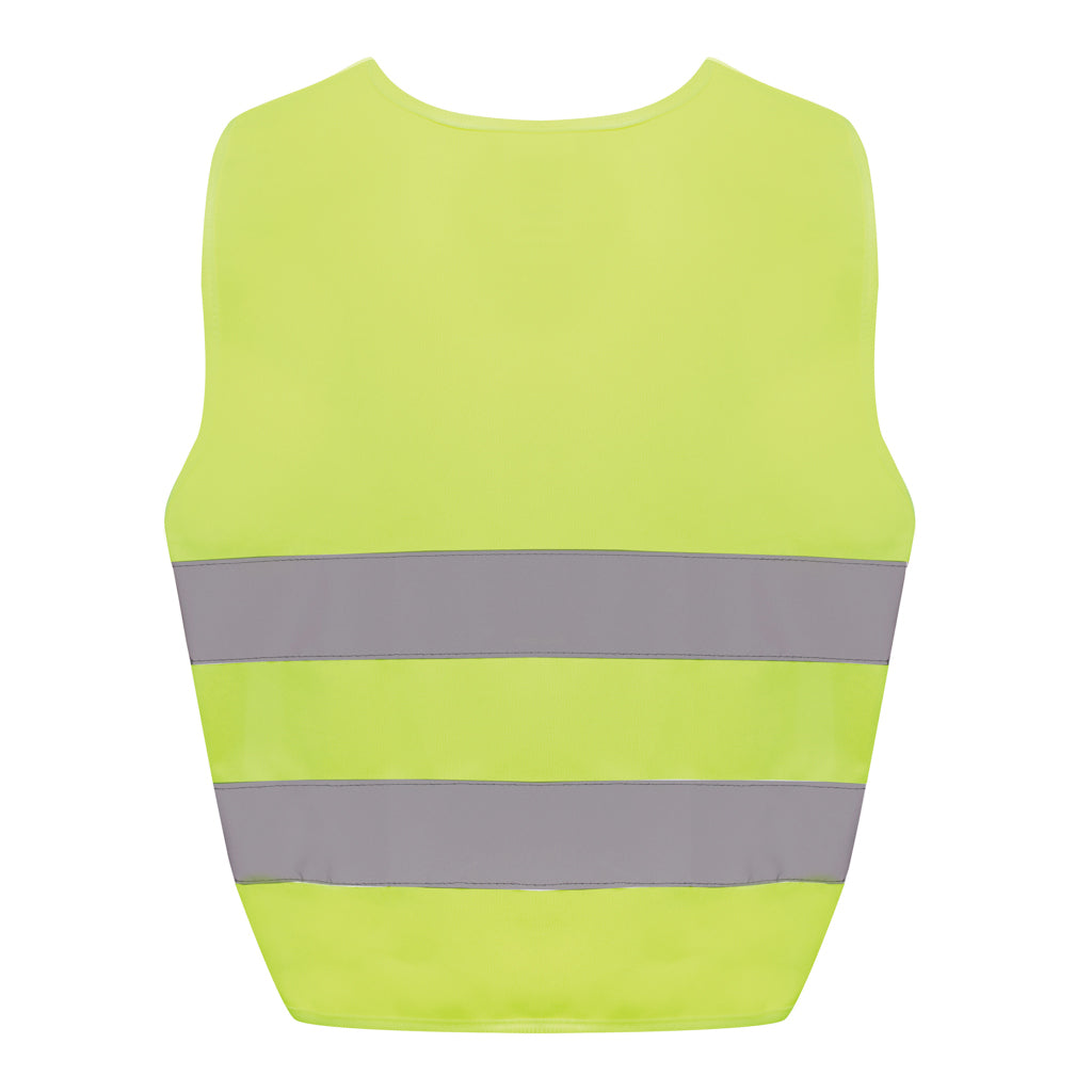 XS-sized high-visibility vest designed for children aged 3 to 6, with a height range of 90 to 140 cm. This vest features space for decoration on both the front and rear sides. It is equipped with hook and loop closures on the shoulders and at the bottom for added safety and easy donning. The elastic bands on the opposite side provide flexibility, allowing it to be comfortably worn over thick coats. This vest has rigorous testing and complies with EN 17353:2020 Type AB3. Furthermore, it adheres to the PPE guidelines specified in Regulation (EU) 2016/425 for Personal Protective Equipment Category II. Made with GRS certified recycled PET. Total recycled content: 55% based on total item weight. GRS certification ensures a completely certified supply chain of the recycled materials.
