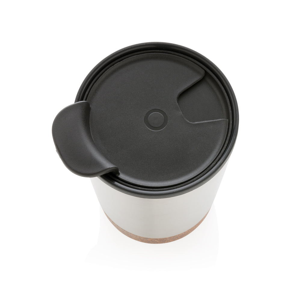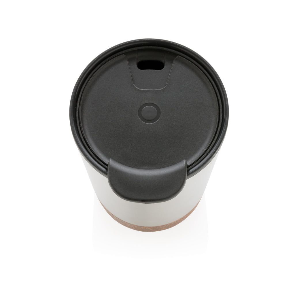 Start your day with your favourite beverage in this double wall coffee mug with recycled plastic inner and unique cork detail. Keeps your drinks warm for up to 3h and cold up to 6h. Made with GRS certified recycled materials. The inner is made from 100% GRS certified PP. GRS certification ensures a completely certified supply chain of the recycled materials. Total recycled content: 52% based on total item weight. BPA free. Capacity 300ml. Including FSC®-certified kraft packaging.