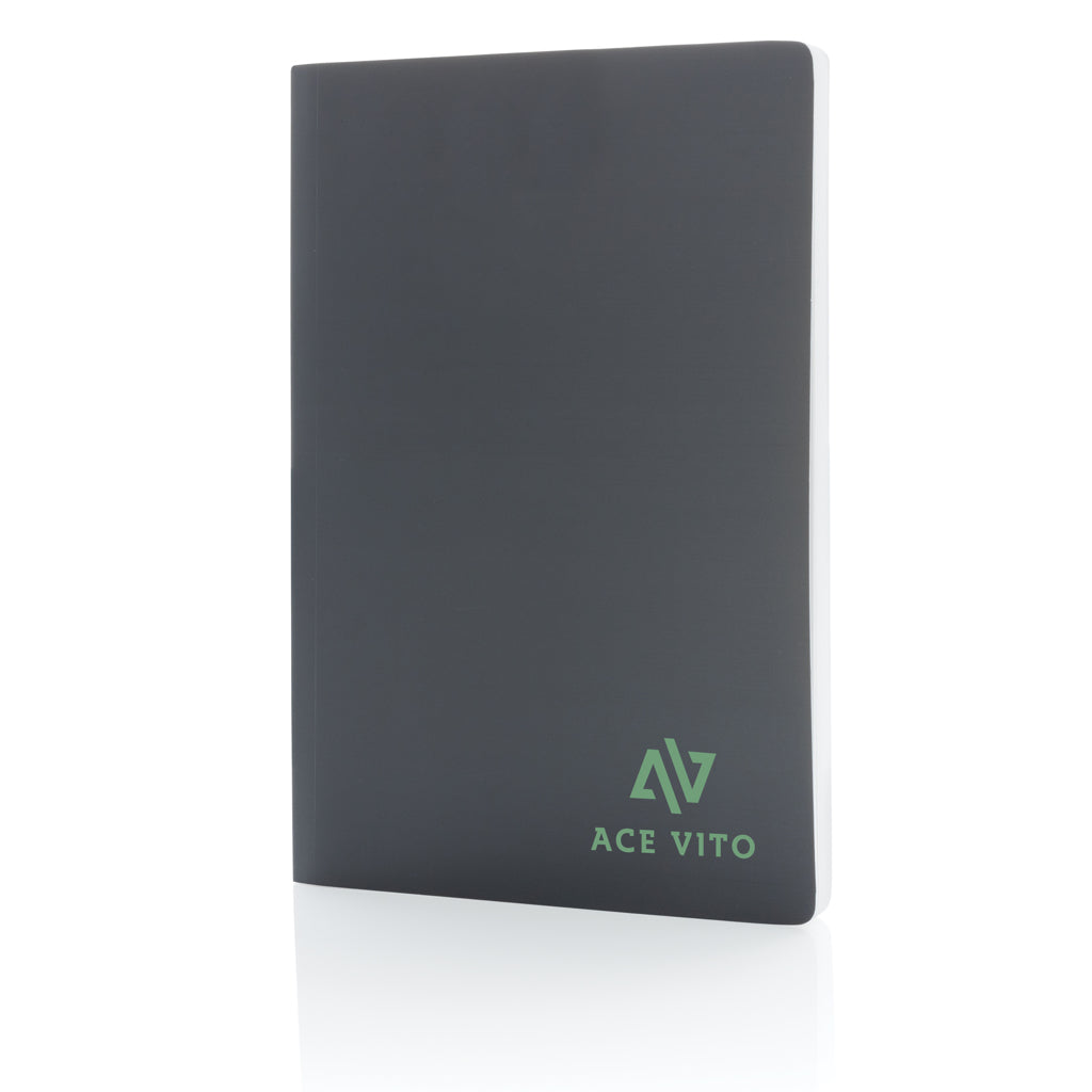 This Impact collection stone paper notebook is made of tree-free paper! Stone paper consists mainly of mineral powder (80%) bound with (20%) of non-toxic HDPE (a clean plastic). Zero water or bleach is used during production, which is the case during the production of traditional wood pulp paper. Traditional wood pulp paper uses around 2770 litres of water and around 18 trees. This beautiful A5 stone paper notebook uses zero! Soft to the touch and velvety paper for ultra-smooth writing. 60 sheets/120 pages of 58 gm/m2 white coloured lined stone paper. The cover is also made entirely of stone paper to save water. With the focus on water, 2% of proceeds of each sold Impact product will be donated to Water.org.