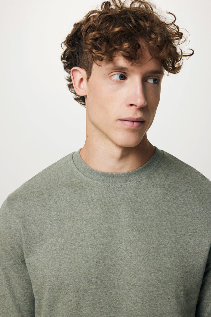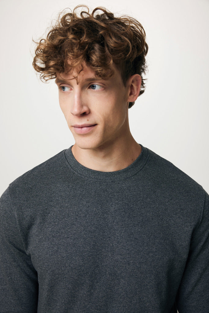 Unisex classic fit crew neck made from 100% cotton, of which 50% is recycled and 50% organic, in 340 G/M². It is the same crew neck sweater as our iqoniq ‘Zion’ crew neck. One difference: we eliminate the dyeing process. We have blended recycled cotton in its existing colour with virgin organic cotton, which creates the beautiful heather mélange effect. The use of genuine recycled & organic fabric materials and environmental impact claims are guaranteed, by using the AWARE™ disruptive physical tracer and blockchain technology. By scanning the QR code you will gain access to a dedicated digital passport of the product. 2% of proceeds of each sold product will be donated to Water.org. This product is OEKO-TEX® STANDARD 100 2303045 Centexbel. certified. Due to the nature of recycled yarns, impurities and colour variations may appear.