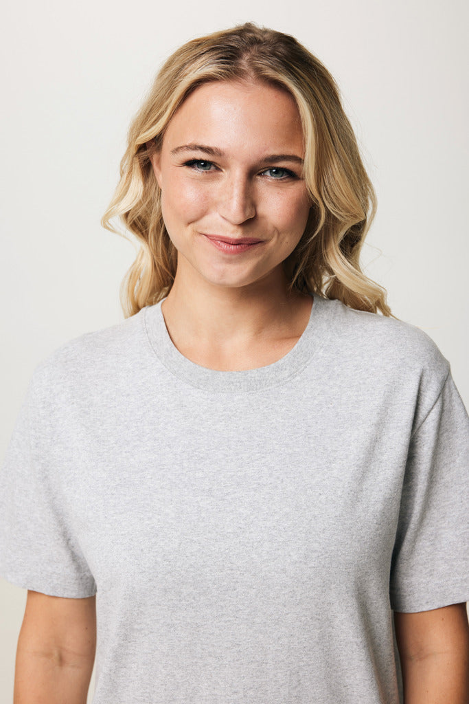 Unisex relaxed fit t-shirt made from 100% cotton, of which 50% is recycled and 50% organic, 180 G/M². The t-shirt has a crew neck with 1x1 rib. The use of genuine recycled & organic fabric materials and environmental impact claims are guaranteed, by using the AWARE™ disruptive physical tracer and blockchain technology. By scanning the QR code, you will gain access to a dedicated digital passport of the product. 2% of proceeds of each sold product will be donated to Water.org. This product is OEKO-TEX® STANDARD 100 2303045 Centexbel certified. Due to the nature of recycled yarns, impurities and colour variations may appear.