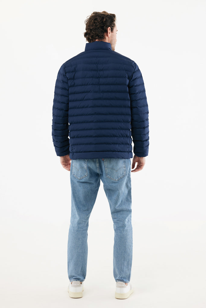 Men’s medium fit padded jacket made from 100% post-consumer recycled polyester. The jacket is fully quilted with 100% recycled polyester filling. It has a reversed zipper at the front and practical zip pockets in the side panel seams. All zippers have extra zip pullers in matching colour for a refined look. The cuffs have elastic binding and all seams at the inside are clean finished with recycled binding. Fluorine/PFAS free water repellent impregnation. The use of genuine recycled fabric materials and environmental impact claims are guaranteed, by using the AWARE™ disruptive physical tracer and blockchain technology. By scanning the QR code, you will gain access to a dedicated digital passport. 2% of proceeds of each sold product will be donated to Water.org. This product is OEKO-TEX® STANDARD 100 certified. The Maiko padded jacket is also available in women fit.