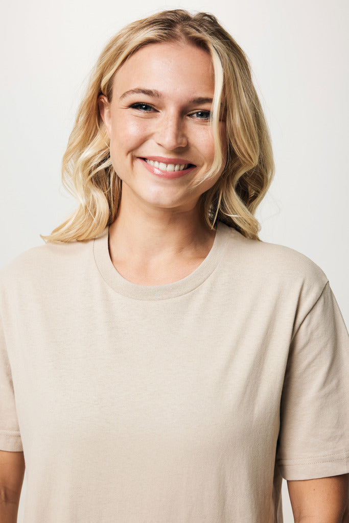 Unisex boxy fit t-shirt made from 100% cotton, of which 50% is recycled and 50% organic, 180 G/M². This trendy t-shirt has a neckline with 1x1 rib and a comfortable boxy fit with a slightly shorter body length. The use of genuine recycled & organic fabric materials and environmental impact claims are guaranteed, by using the AWARE™ disruptive physical tracer and blockchain technology. By scanning the QR code you will gain access to a dedicated digital passport of the product. 2% of proceeds of each sold product will be donated to Water.org. This product is OEKO-TEX® STANDARD 100 2303045 Centexbel certified. Due to the nature of recycled yarns, impurities and colour variations may appear.