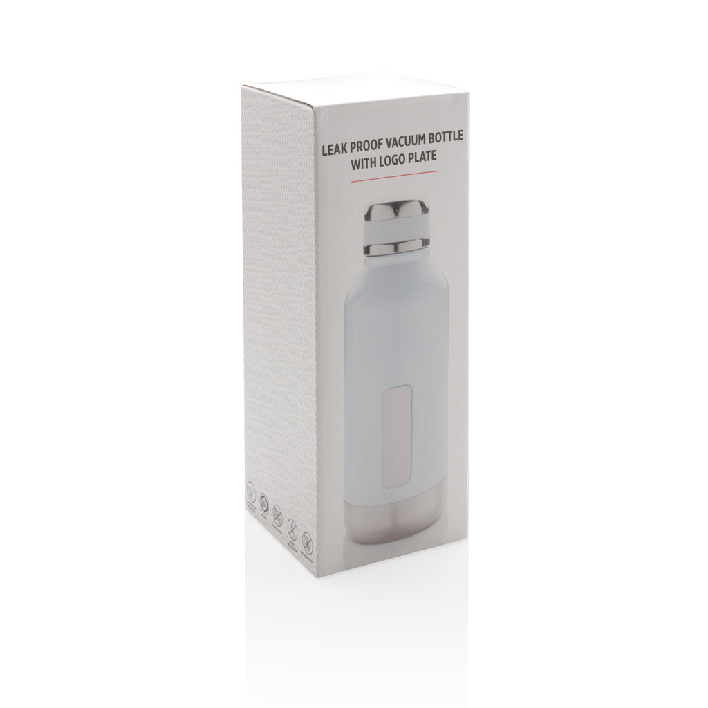 Leak proof vacuum bottle with logo plate