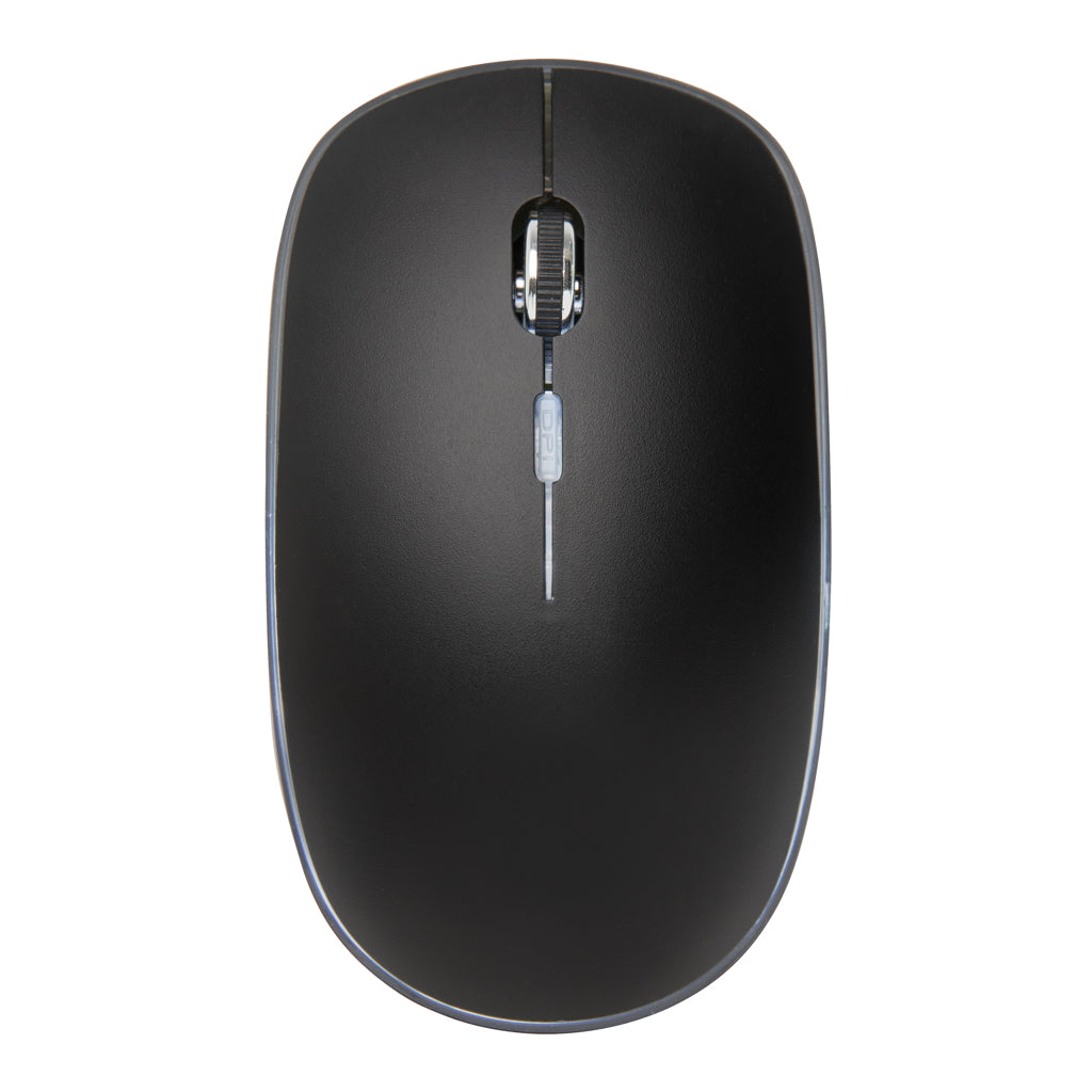 Comfortable design and re-chargeable wireless mouse with option to engrave your logo that will light up for extra exposure your brand. The mouse has a re-chargeable 300 mah lithium poly battery that can be re-charged in three hours. Connection speed 125 HZ via the included and easy to install USB dongle. With left and right click button and middle scroll/click button. The sensitivity of the mouse can easily be adjusted to your personal preference. Compatible with all recent Windows and Mac operating systems