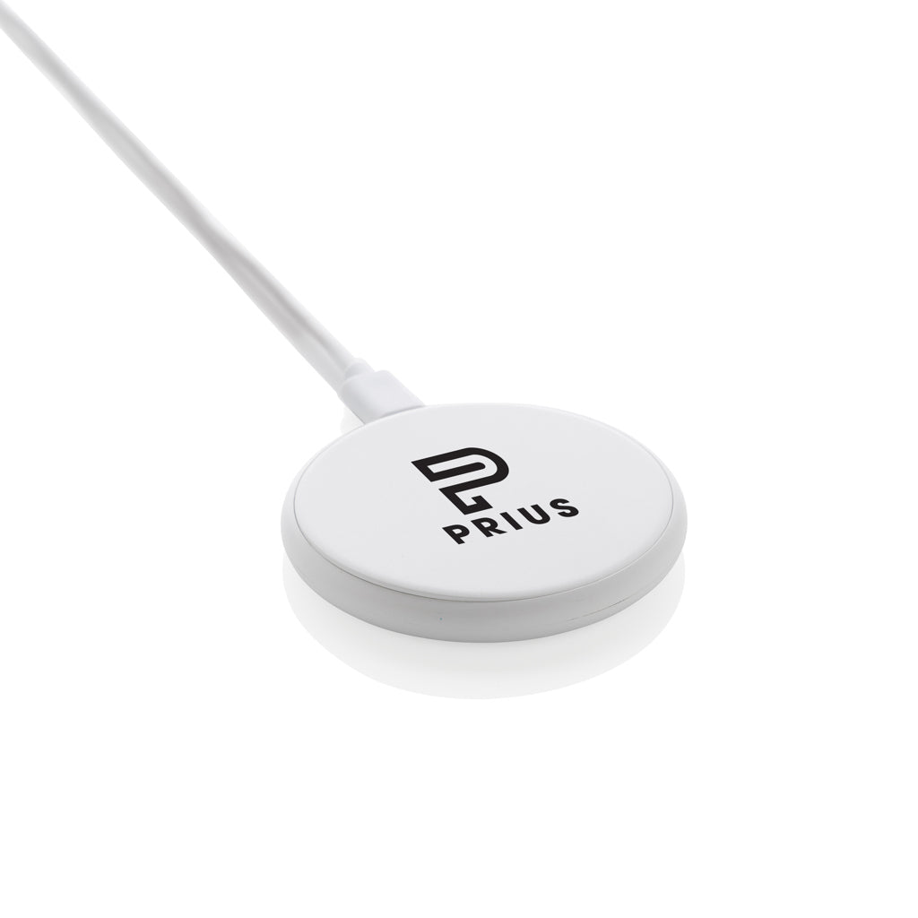 Unique design 15W magnetic wireless charger that gives you the option to charge either your mobile device, earbuds or iWatch. Simply click them on and start charging. Made with recycled ABS and recycled TPE. Total recycled content: 35% based on total item weight. RCS certification ensures a completely certified supply chain of the recycled materials. Including 120 cm USB A to USB C charging cable made from RCS certified recycled TPE. Packed in FSC® packaging. PVC Free. Output 9V.2.2A Output watch: 9V/0.4A, Output earbuds: 9V/0.5A. Input 9V/3A.