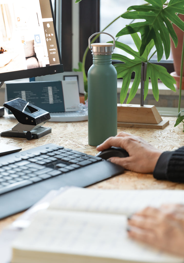 A drinking bottle that is beautiful through its simplicity. This modern single wall stainless steel bottle features a stainless steel lid finished with a beautiful piece of bamboo. With a stainless steel handle for easy carrying. Capacity 710ml. BPA free. Handwash only.