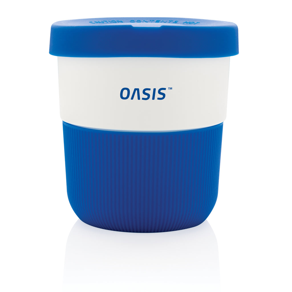 A sustainable alternative to traditional cups! Bringing style and practicality to your morning commute, this PLA coffee cup is ideal for transporting your favourite hot beverage. Manufactured from plant material (PLA), so not only stylish but also kind for the planet. Comes with a silicone grip and lid for your convenience. Fits conveniently under most coffee machines. 100% melamine free. Capacity 280ml.