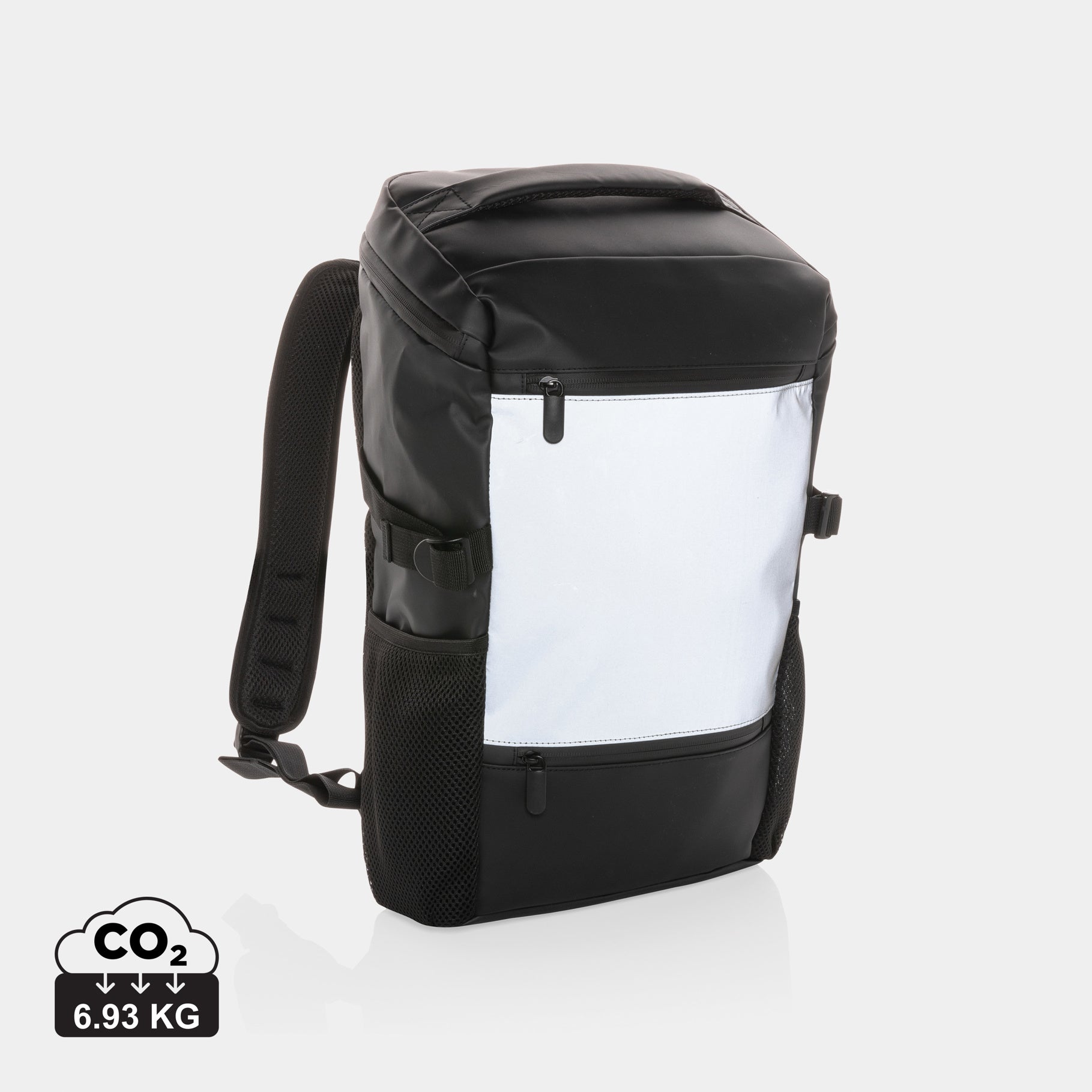 This high visibility easy access laptop backpack is the ideal backpack to carry every day and provides extra safety at night thanks to the big surface of reflective material which ensures you are visible to traffic. The backpack has all the space you'll need in a day bag or carry-on. The roomy main compartment has a 15.6" laptop pocket and a small pocket to quickly grab your phone or keys. The big zipper opening makes it easy to see what's in your backpack at a glance. Water resistant. The reflectivity has been tested in accordance with EN 13356:2001.