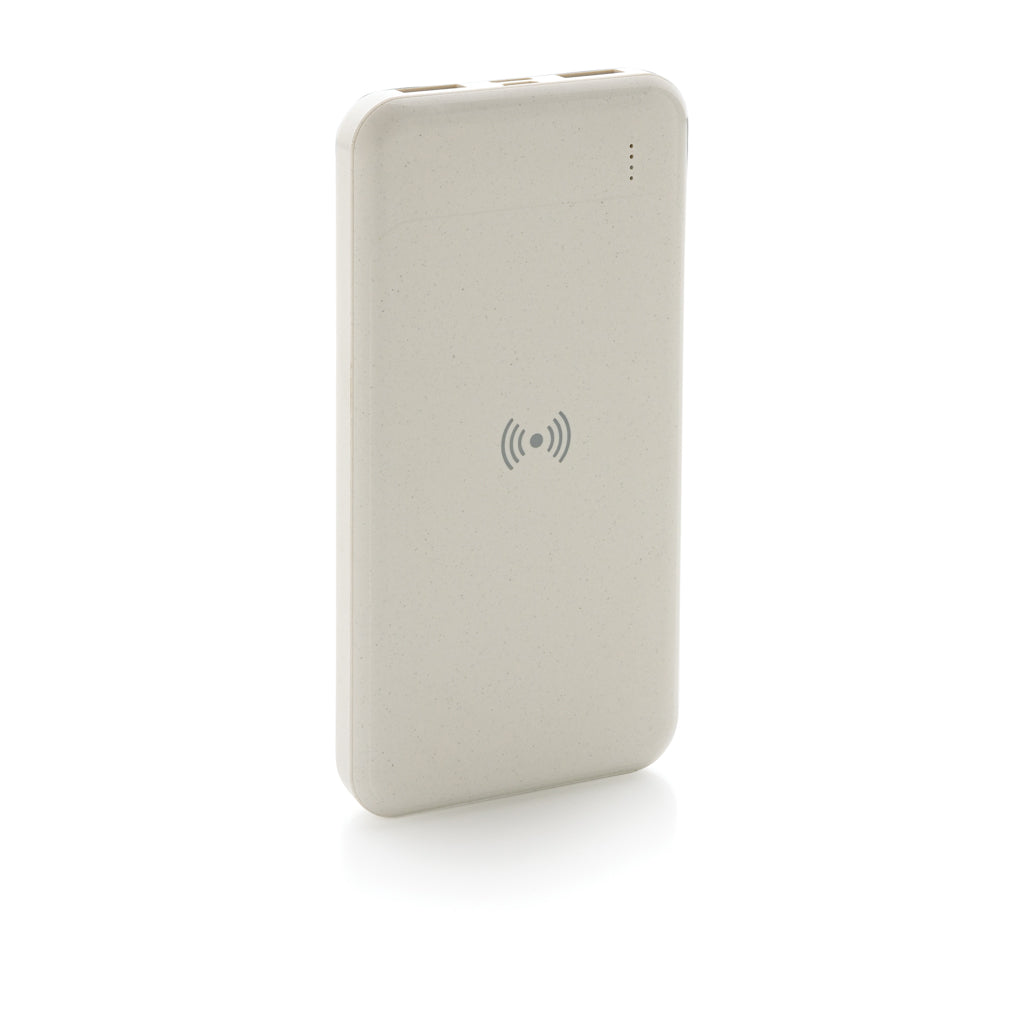 8.000 mAh powerbank with 5W wireless charger where the case is made out of RCS certified recycled ABS plastic. RCS (Recycled Claim Standard) is a standard to verify the recycled content of a product throughout the whole supply chain. Total recycled content: 22% based on total item weight. When fully charged the powerbank provides you with enough energy to re-charge your mobile phone up to four times. The powerbank contains a long lasting grade A 8.000 mAh lithium polymer battery. The power indicators will indicate the remaining energy level so you always know when to re-charge. Type-C input 5V/2A; Micro USB Input 5V/2A; Wireless Output 5W; 2x USB output 5V/2A; Item and accessories PVC free. Including PVC free recycled TPE material charging cable.