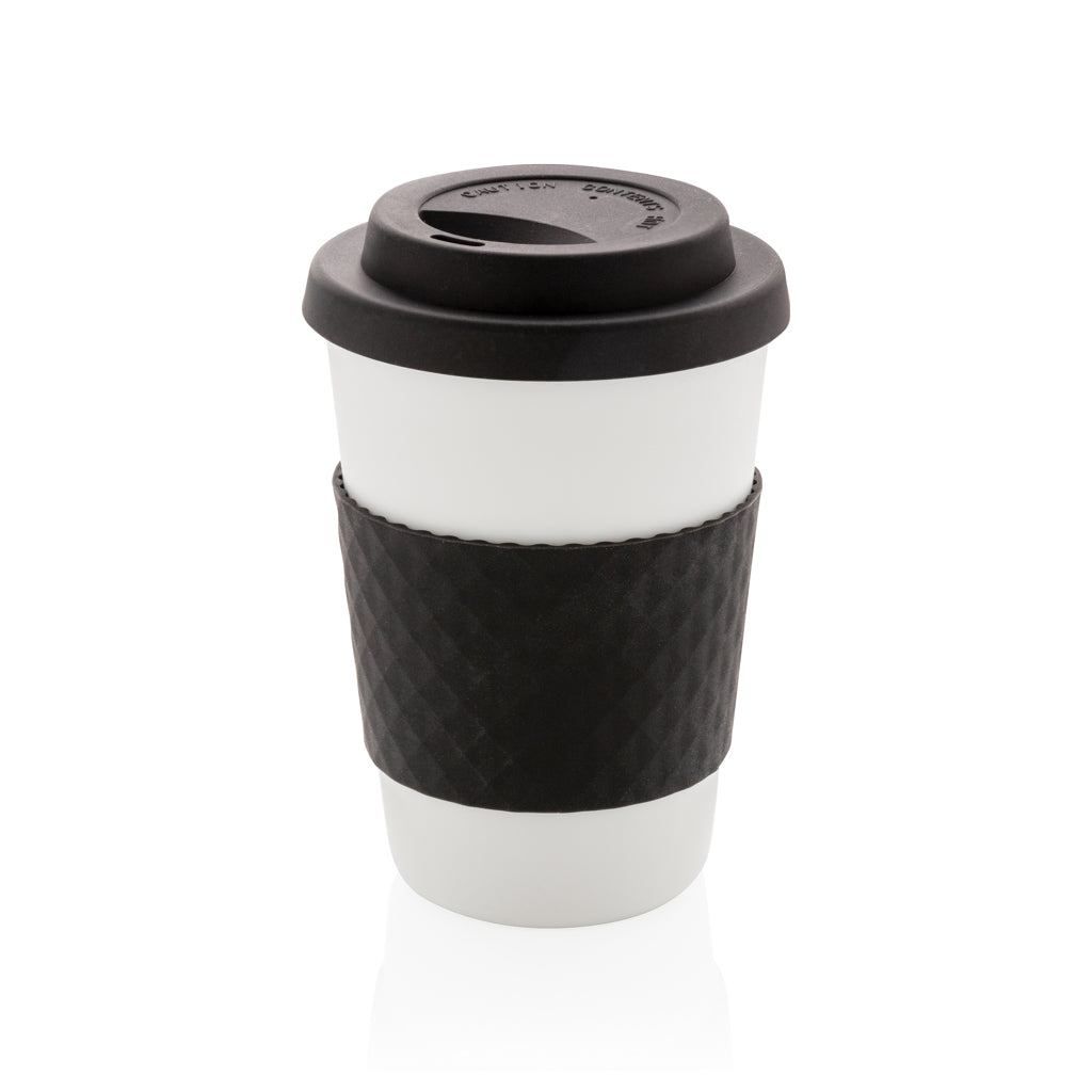 Stop single use! Bring your own cup and join the reuse revolution so you can contribute to a disposable free world. These lightweight and durable cups are perfectly suited to take your coffee on the go. 100 degree Celsius food safe approved. With silicone lid and sleeve. Dishwasher and microwave safe. Fits conveniently under most coffee machines. Content: 270ml.
