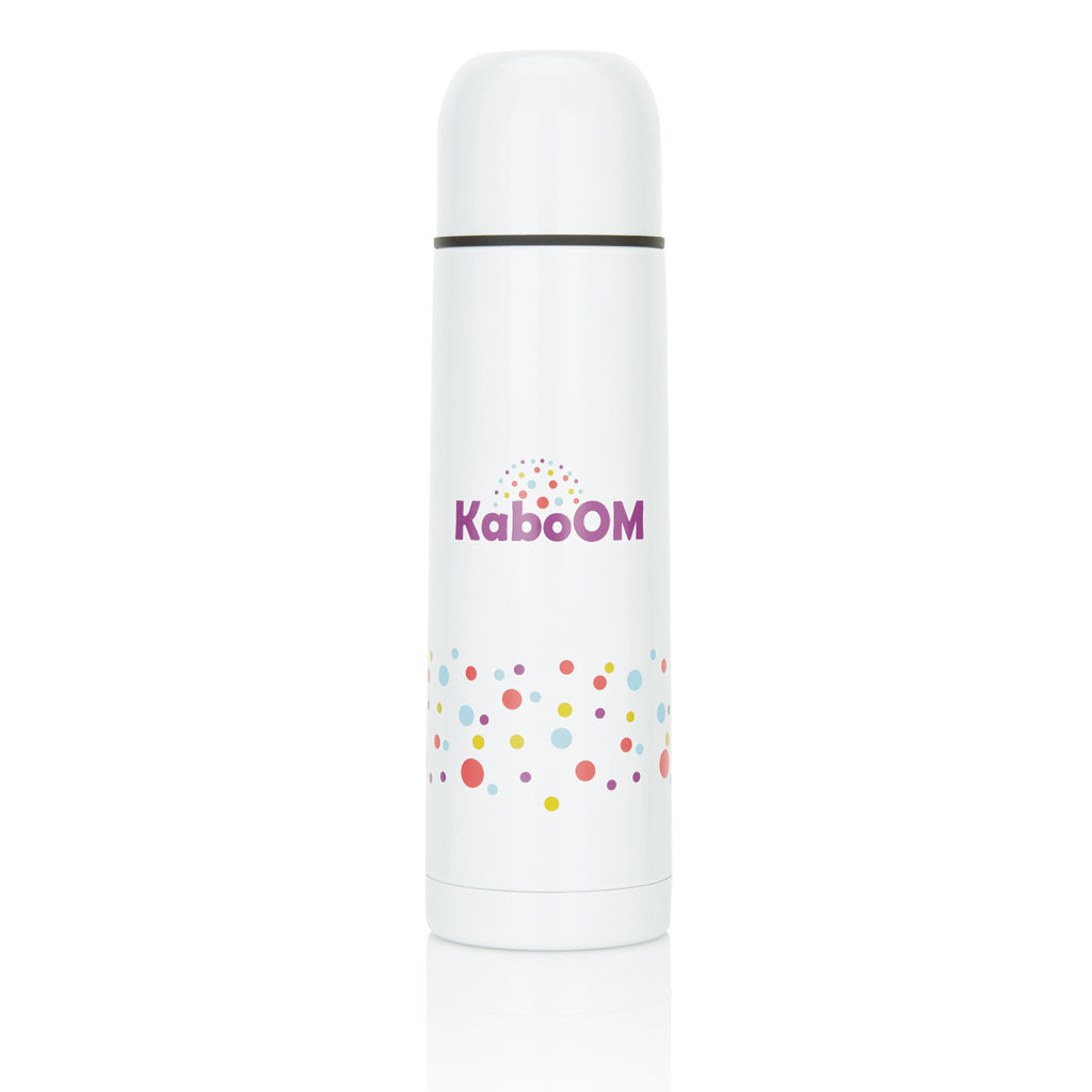 500ml double wall and vacuum stainless steel flask with push closure and cup.