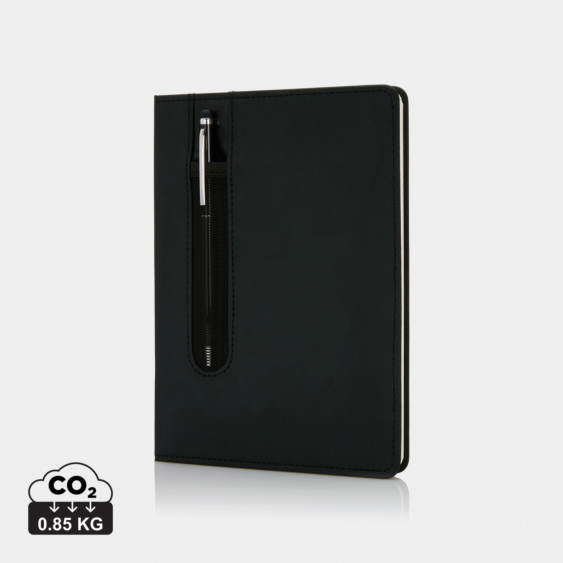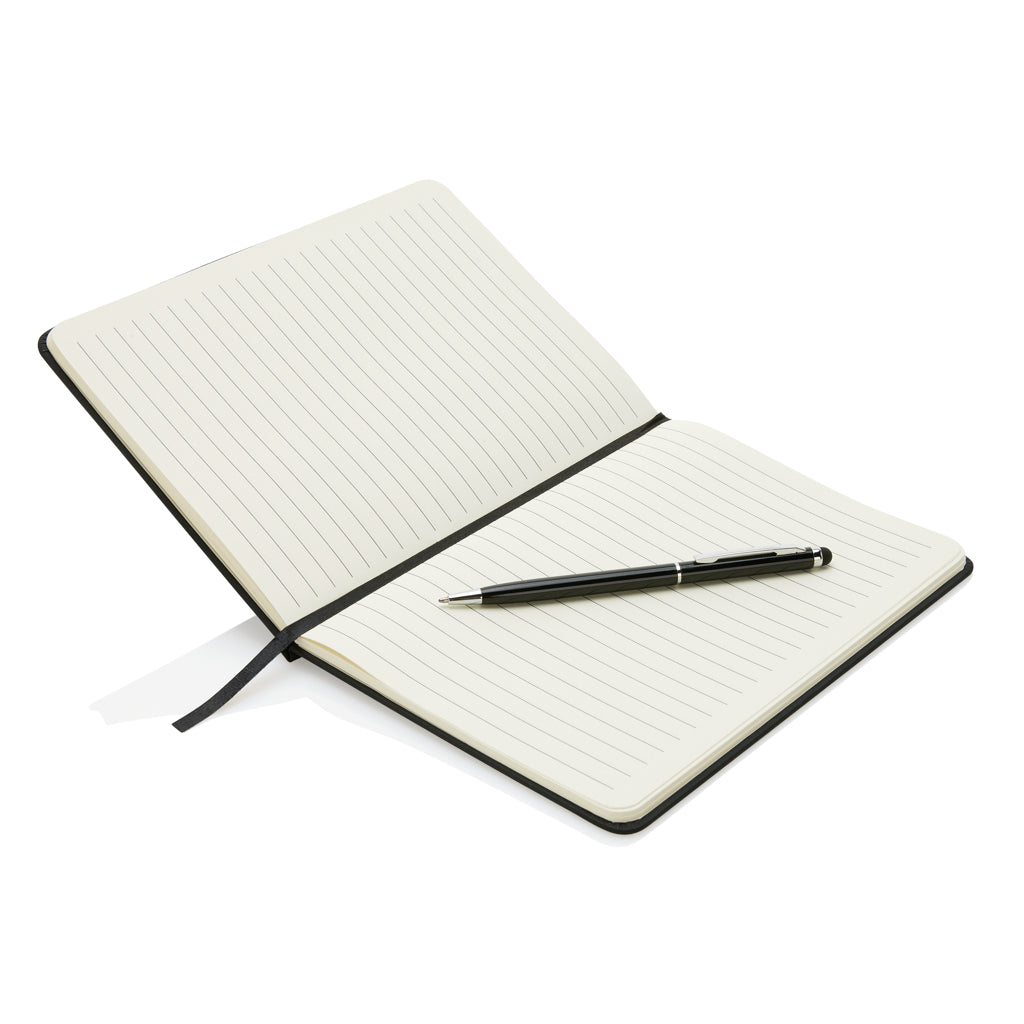The perfect combo: A5 PU notebook with pen sleeve and a metal stylus pen. Packed in giftbox. 160 pages of 80g/m2 paper Inside.
