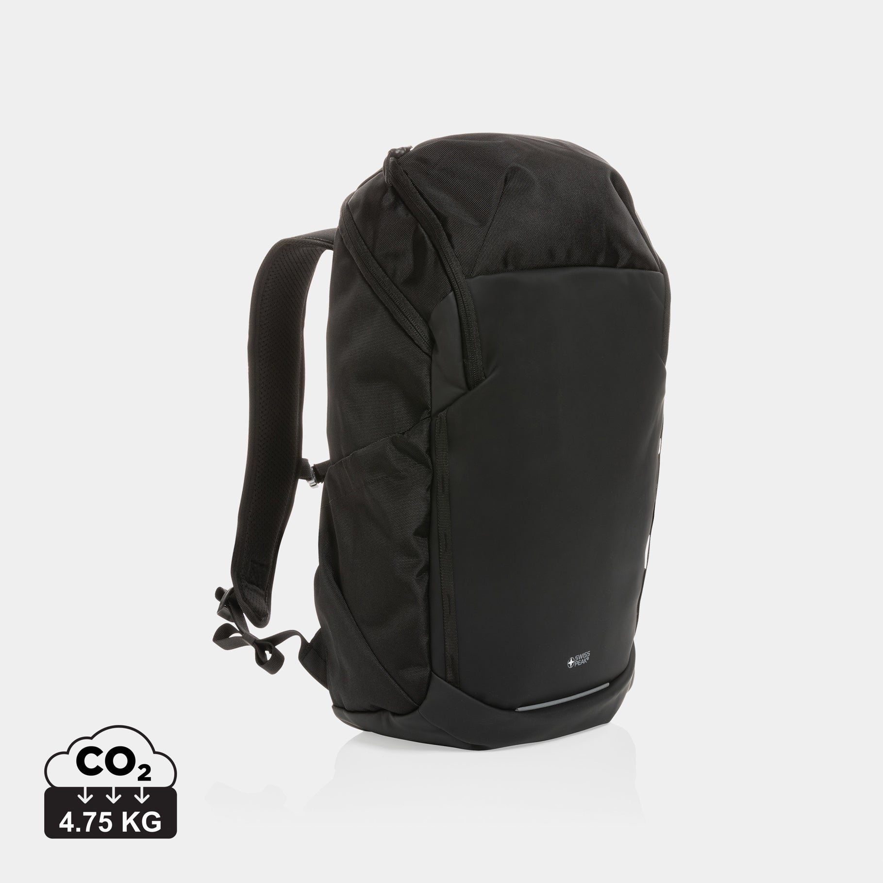 Swiss Peak AWARE™ RPET 15.6 inch business backpack is a weather-resistant backpack for work and everyday adventures. The backpack features a roomy main compartment and on-the-go quick access to your laptop via the side zipper. Comfortable to wear thanks to the contoured, breathable shoulder straps, padded back panel and fully adjustable chest trap. A top zipper pocket holds all your daily essentials. The exterior is made with PU and 1200D recycled polyester. The lining is made with 100% 150D recycled polyester. With AWARE™ tracer that validates the genuine use of recycled materials. Each bag has reused 38.19 0.5L PET bottles. 2% of proceeds of each product sold containing AWARE™ will be donated to Water.org.