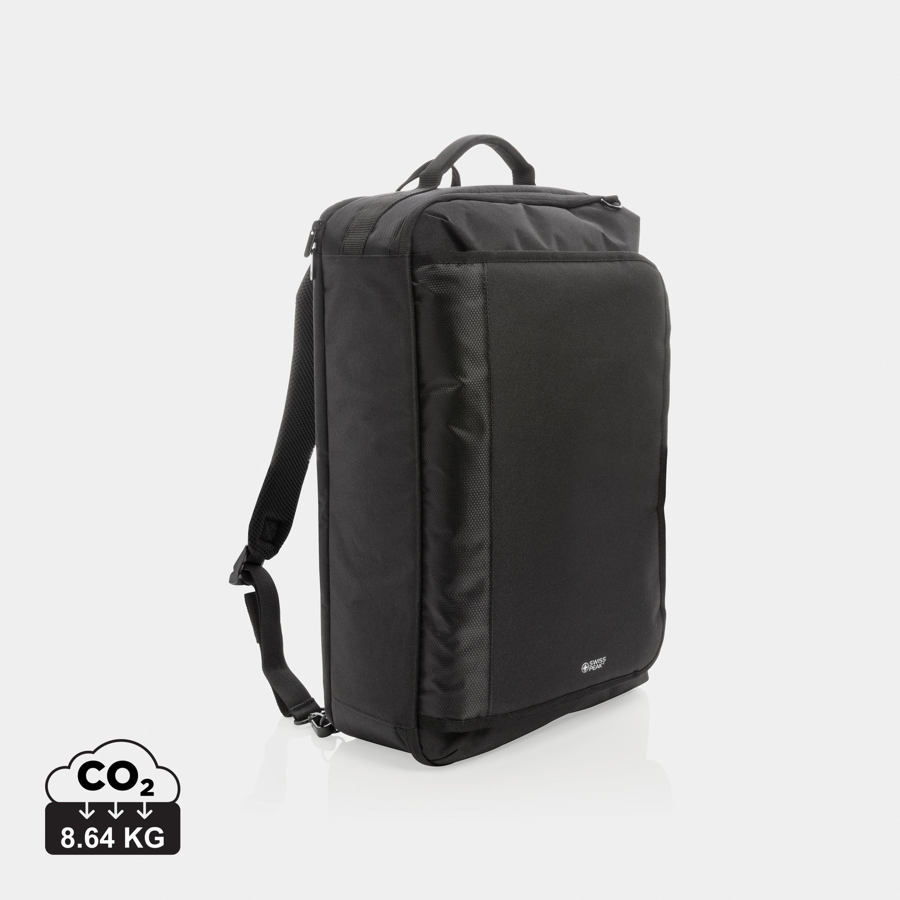Break barriers using the convertible backpack. Functional organisation and business features ensure this backpack will be an everyday choice. 4-1 Convertibility: 1. Backpack: Clip the padded straps to the secure rings and adjust the fit to create backpack mode. 2. Shoulder: Unclip and tuck the backpack straps inside the sleeve, attach and adjust the shoulder strap to comfortably carry on the shoulder. 3. Crossbody: When packed full, adjust the shoulder strap to wear across the body for a more comfortable, secure, hands free commuting mode. 4. Hand Held: Tuck the backpack straps and remove the shoulder strap, carry by either the top or side handle for a hand held option. With 15.6" dedicated laptop compartment in the back. Large main compartment for travel goods and front zippered pocket for all tech accessories. Including RFID protected sleeves and trolley luggage strap. PVC free.