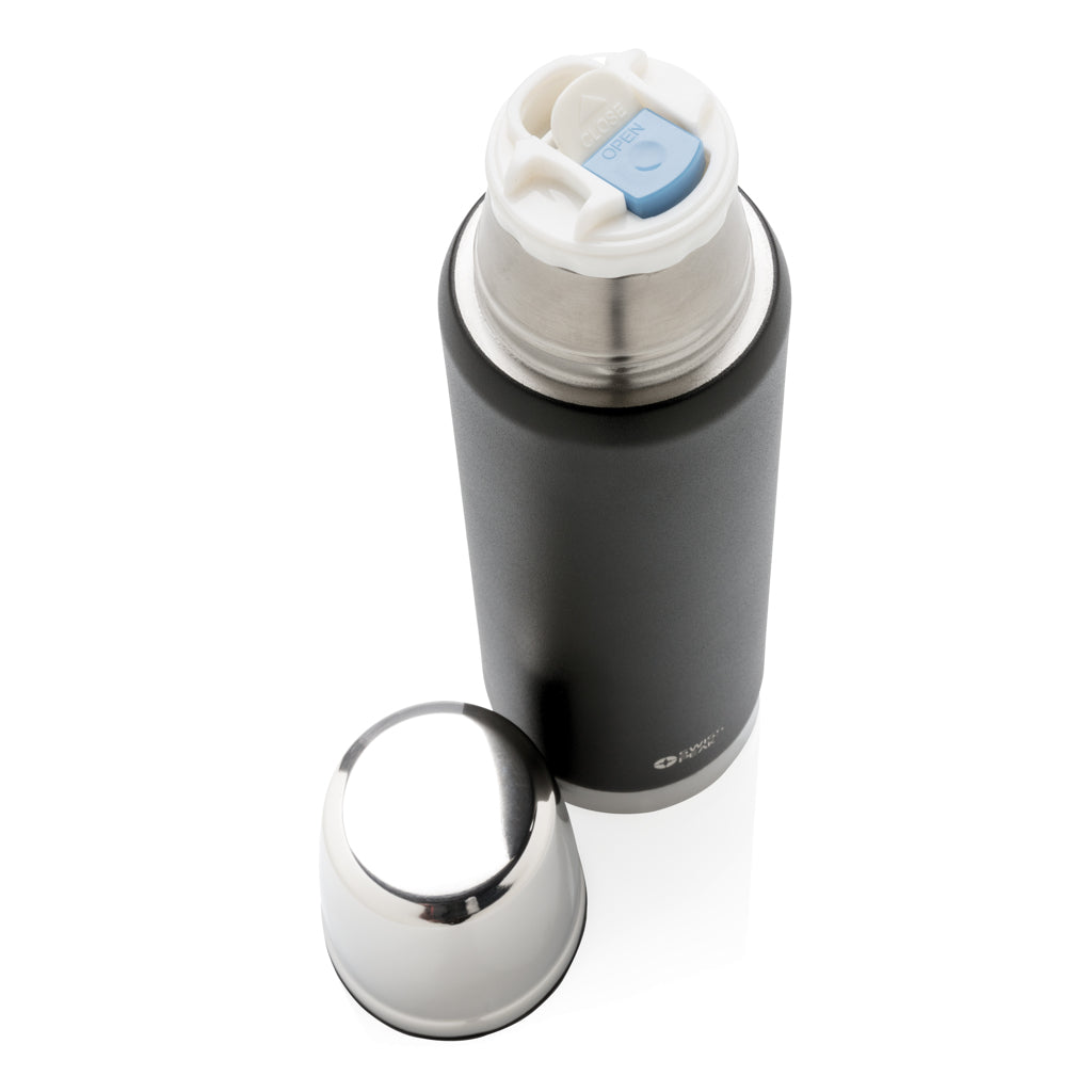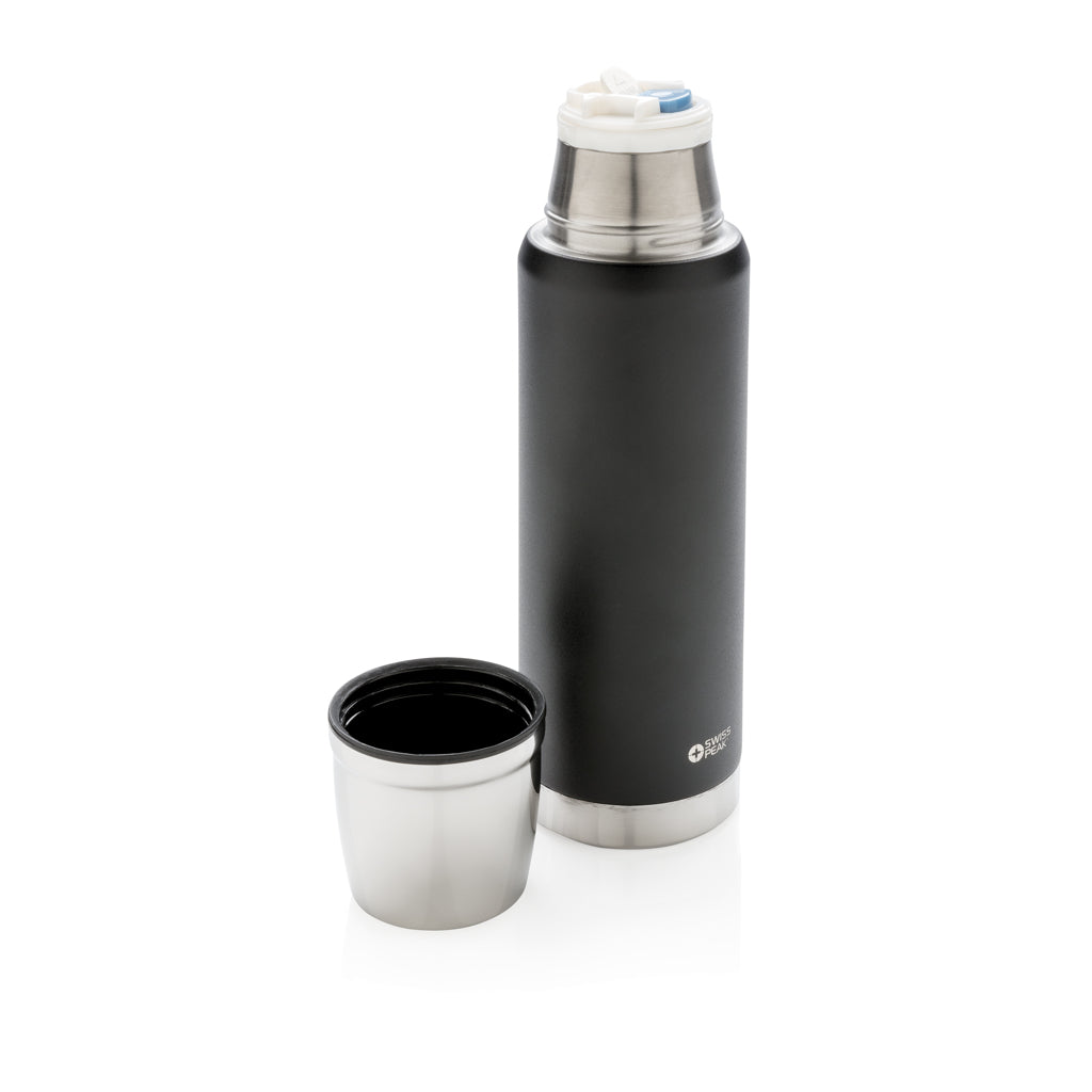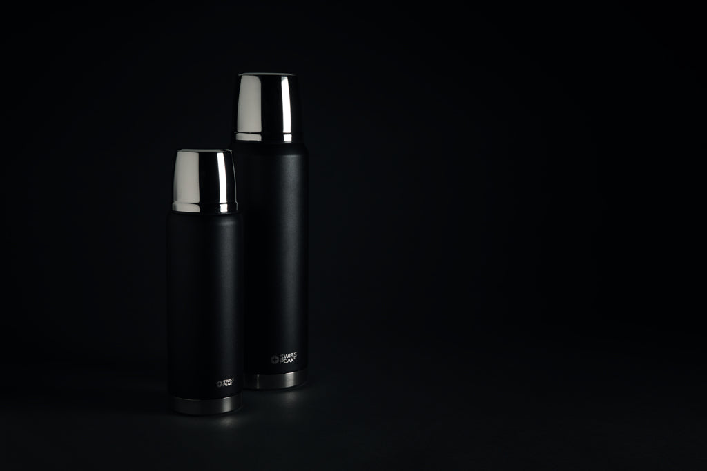 The Swiss Peak Elite series are with vacuum insulation and double wall 18/8 grade stainless steel. The powder coated black colour is built to last! No fading or cracking here! The inner wall is plated with copper for ultimate conductivity to keep drinks hot for 8 hours and cold for 24 hours. Hand washable and leakproof. Content 500 ml.