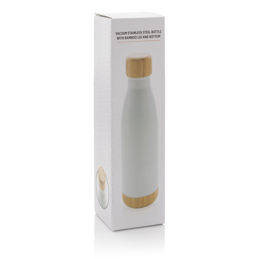 Vacuum stainless steel bottle with bamboo lid and bottom