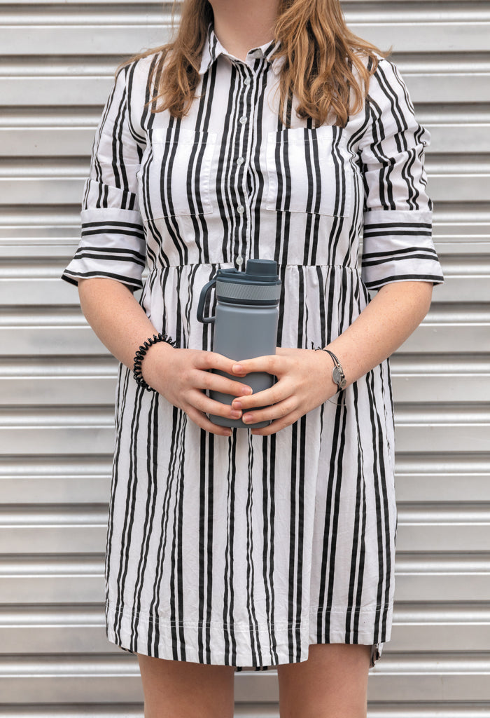 Enjoy some ice cold water after a heavy workout or a hot drink to warm up after a brisk walk, drink your beverage in style with this beautiful stainless steel vacuum bottle. Leakproof uniqe design lid and a luxurious matt finish for some refreshment on the go. Keep hot for up to 5 hours and cold for up to 15 hours. Capacity 550ml. BPA free.