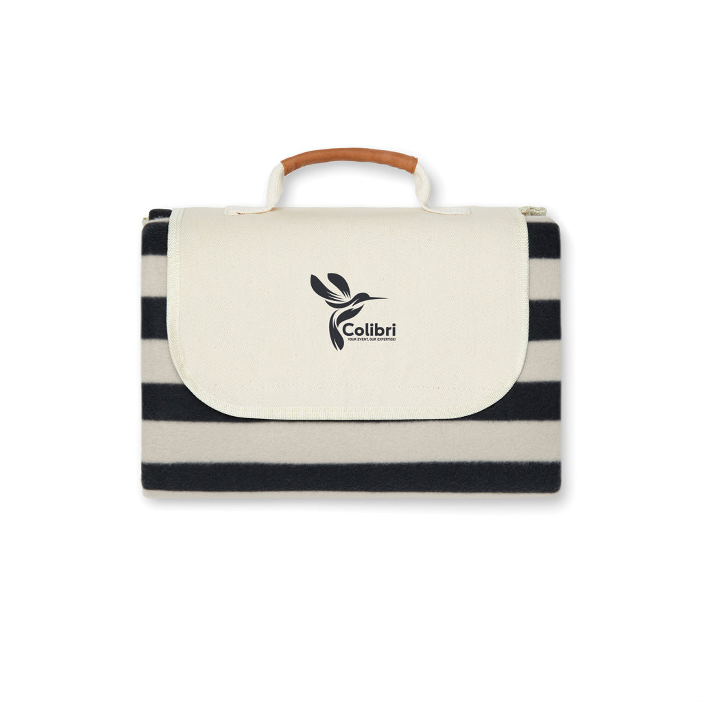 Picnic blanket in soft fleece with cotton canvas and details in PU. Clever construction makes it easy to fold up and take with you. The fleece is crafted GRS certified recycled PET. The back is made in PEVA, which repels water. Certified by GRS (Global Recycled Standard), GRS certification guarantees that the entire supply chain of the recycled materials is certified. The total recycled content is based on the overall product weight. This product contains 51% GRS recycled fleece.