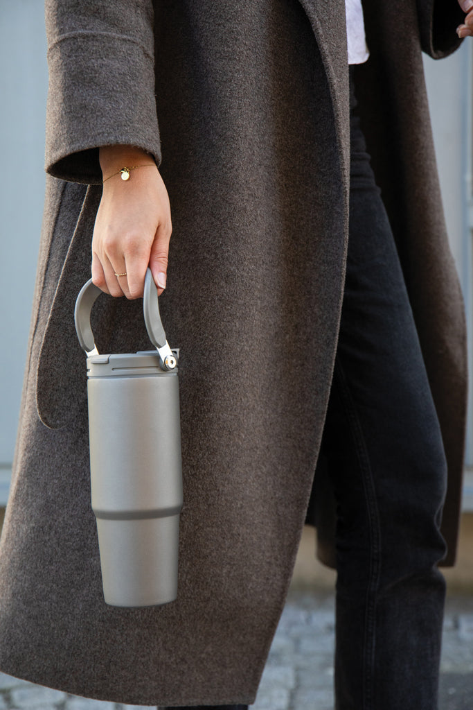 This recycled stainless steel vacuum bottle features a modern design that combines functionality with style. With a generous capacity of 880 ML, it's perfect for all-day hydration on your daily adventures. The bottle includes a functional handle for easy carrying, and the lid offers two beverage intake options. The double-walled insulation keeps your drink cold for up to 16 hours and hot for up to 3 hours, ensuring you stay refreshed throughout your journey. Spillproof. Not dishwasher or microwave safe, only handwash. Including FSC®-certified kraft packaging. Certified by RCS (Recycled Claim Standard), RCS certification guarantees that the entire supply chain of recycled materials is certified. The total recycled content is based on the overall product weight. This product contains 65% RCS-certified recycled stainless steel.