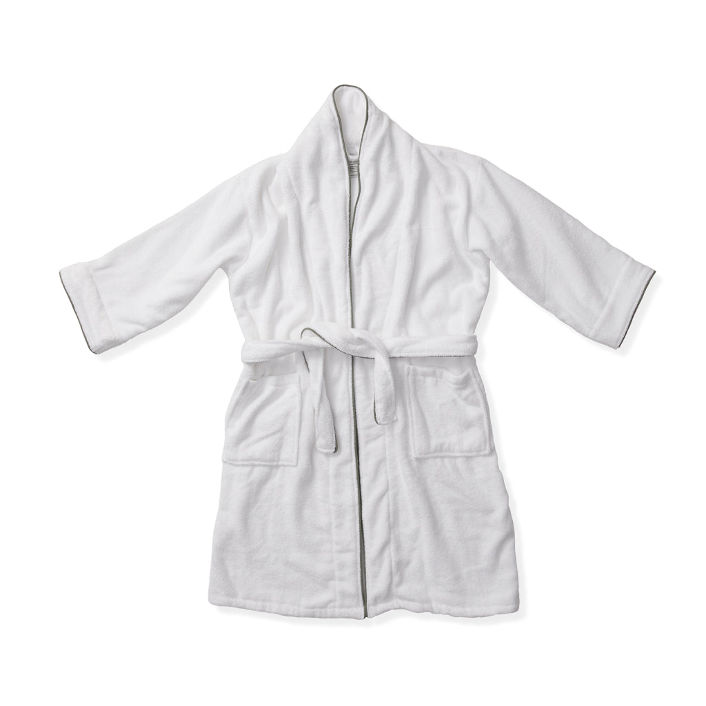 Luxurious robe in 100% cotton. The robe is a classic model with an extra wide collar and belt at the waist. It also has several nice details, such as enclosed seams and contrasting piping on the collar. Made of a long cotton fibre with untwisted threads. The result is an incredibly soft robe that you'll never want to take off.